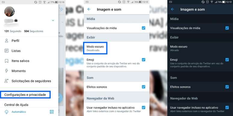 3. Em "Exibir", encontre o "Modo escuro" e ative-o!