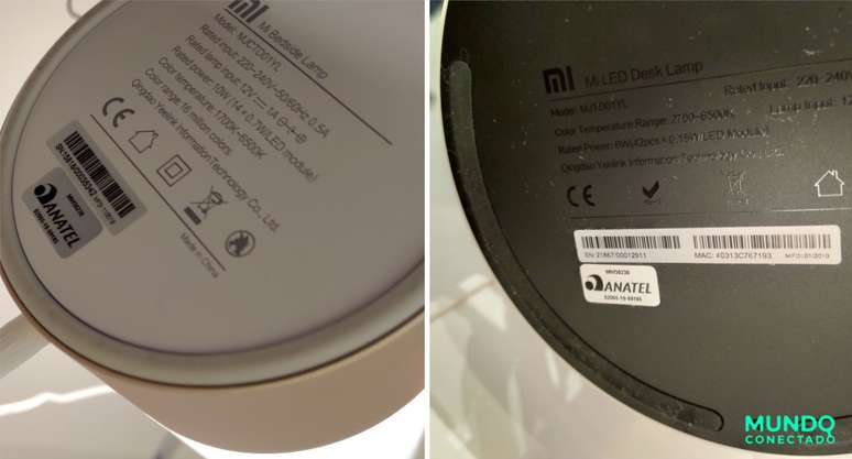 Aconteceu o caso também de produtos similares, mas diferentes — duas luminárias da Xiaomi — possuírem o mesmo número de registro marcado em suas embalagens e ele não consta como homologado pela Anatel. Pior ainda: alguns dispositivos apresentavam o selo da Anatel com um número de registro também não reconhecido pela agência.
