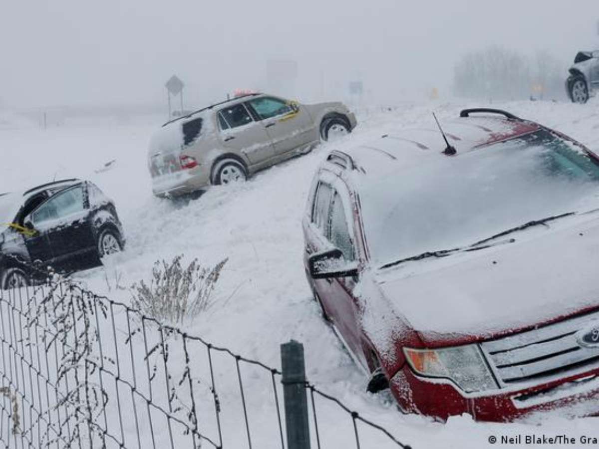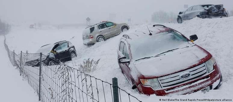 Um dos locais mais afetados pelo evento climático é a região dos Grandes Lagos, perto da fronteira com o Canadá. De acordo com os meteorologistas, a área foi atingida na sexta-feira por um ciclone bomba - quando a pressão atmosférica cai muito rapidamente em uma forte tempestade.