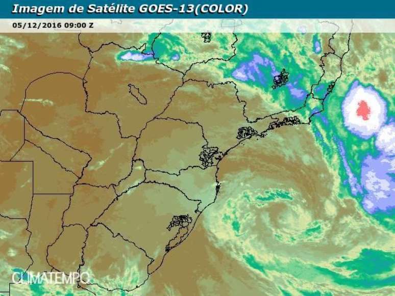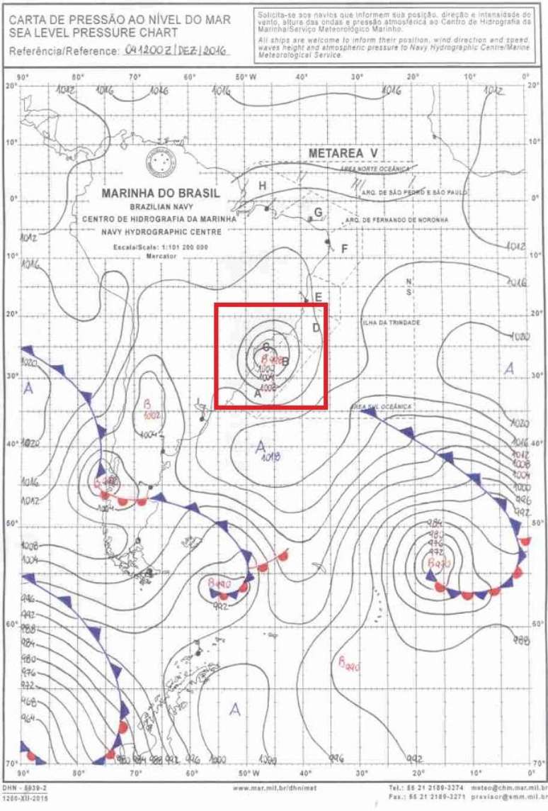 A carta sinótica de 12h UTC de 4 de dezembro, 10h de 4 de dezembro, mostrava apenas uma baixa pressão atmosférica entre o litoral sul de São Paulo e Santa Catarina.