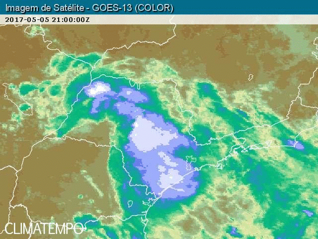 É possível perceber isto pelo movimento da nebulosidade nas imagens de satélite. As nuvens aparecem como manchas azuladas, verdes, às vezes vermelhas. O tom amarelado indica nebulosidade baixa, mas que pode conter chuva. A cor marrom indica áreas que estão com pouca ou nenhuma nebulosidade.