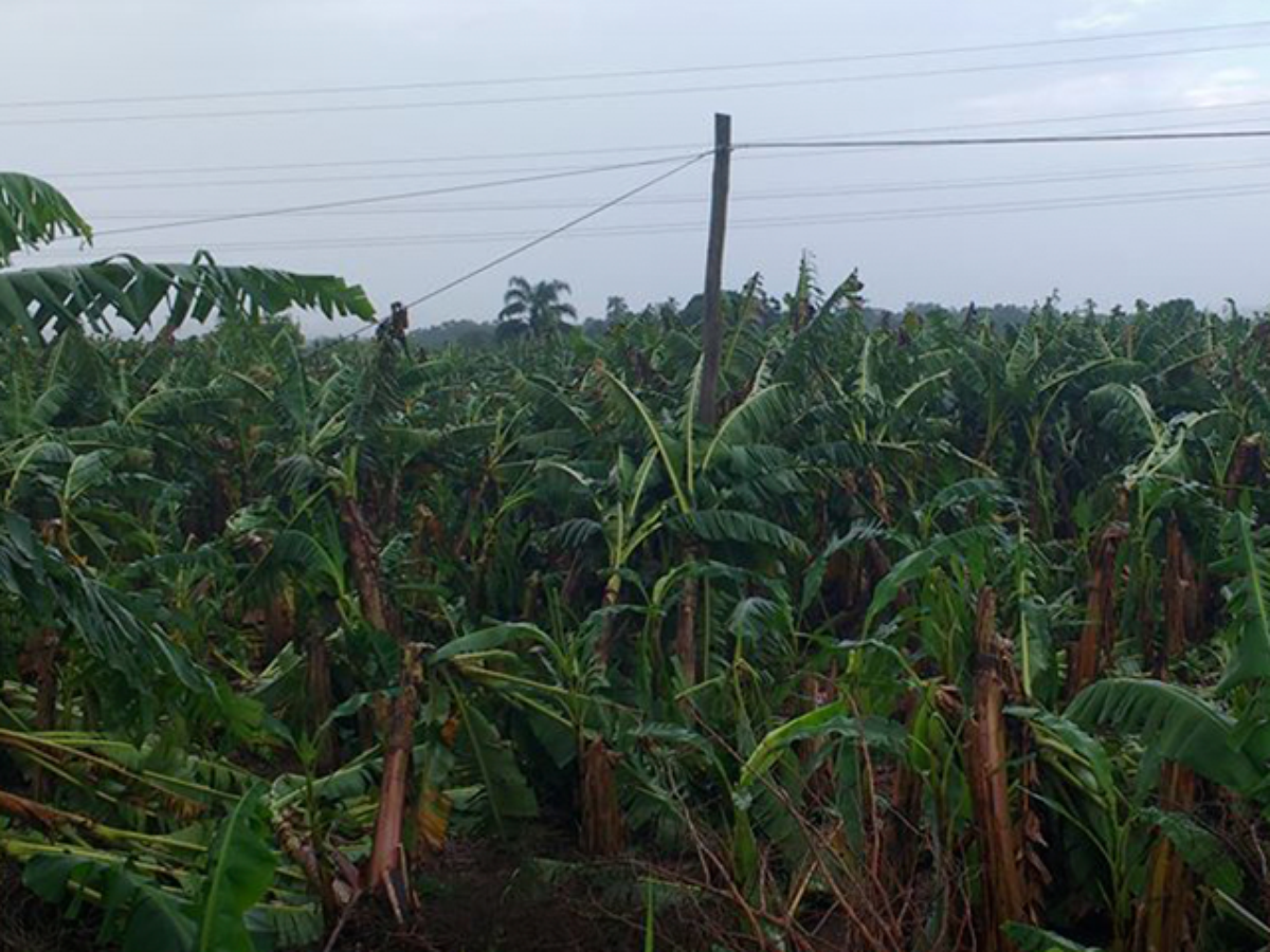 A chuva intensa destruiu bananais
