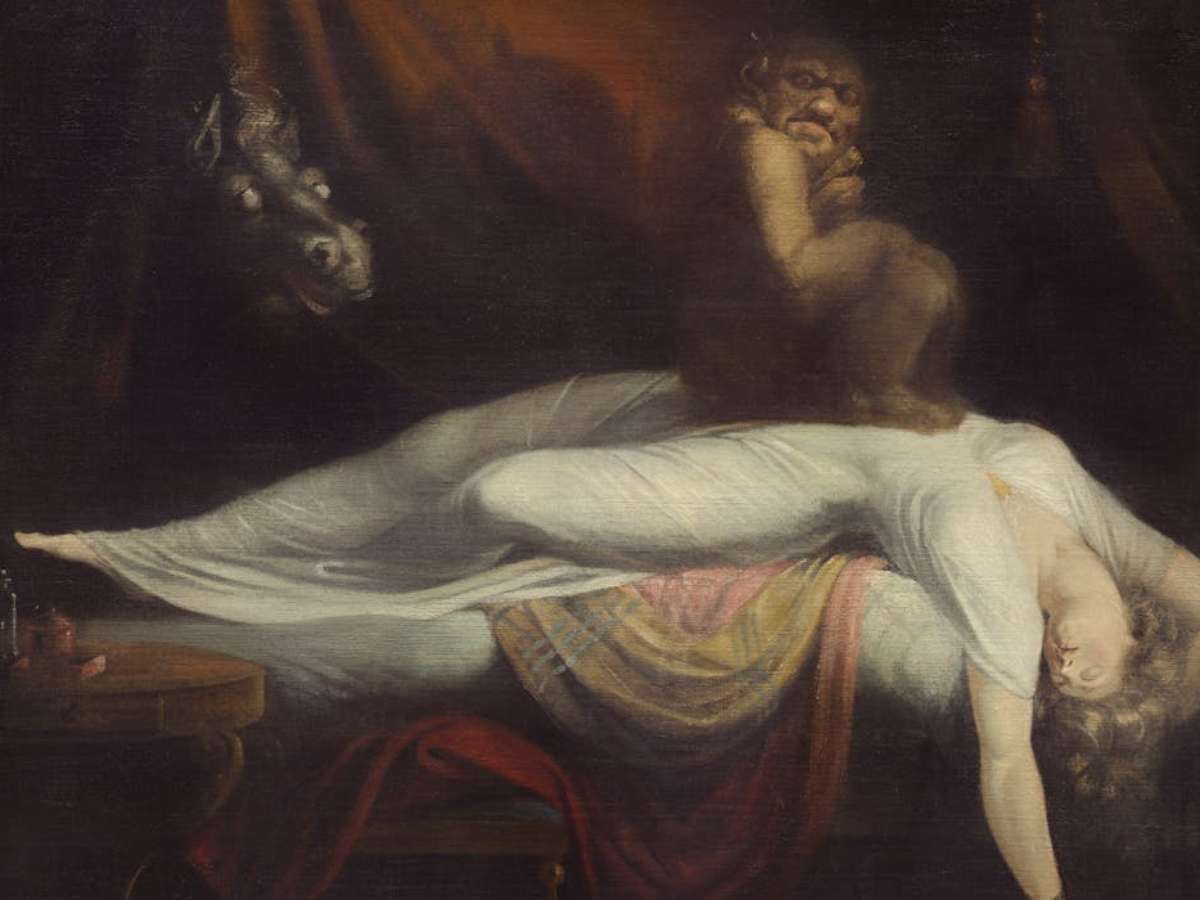 Nesse caminho, a paralisia do sono é um bom estudo de caso. A paralisia do sono ocorre no espaço entre o sono e a vigília — você sente que está acordado, mas não consegue se mover nem falar. É assustadora e bastante comum. E, curiosamente, quem sofre com isso geralmente sente como se houvesse um agente ameaçador sentado em seu peito.