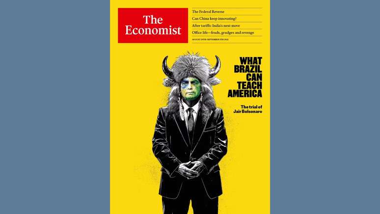 A revista britânica The Economist trouxe nesta semana o ex-presidente Jair Bolsonaro (PL) como personagem central de sua capa. O destaque recai sobre o julgamento marcado para 2 de setembro, em que o brasileiro, atualmente em prisão domiciliar, responderá por tentativa de golpe de Estado.