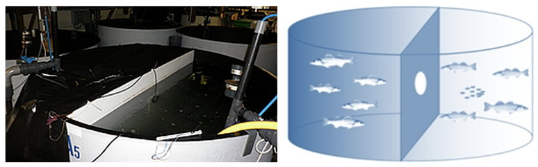 Cada peixe equipado com um chip eletrônico tem sua identidade lida por uma antena quando sai do grupo na área sombreada e se arrisca a ir para o outro lado da divisória. Ao repetir o mesmo teste três vezes, com intervalos de várias semanas, esta pesquisa demonstrou que houve aprendizado — memorização — de que os traços de personalidade se mantiveram estáveis ao longo do tempo e que os indivíduos mais tímidos apresentaram melhor desempenho nas condições da nossa piscicultura.