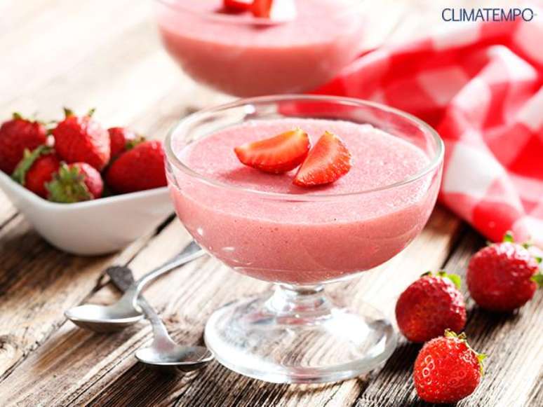 A fruta possui uma substância chamada antocianina, que ajuda na prevenção de ataques cardíacos e problemas de memória. Para preparar a mousse, basta bater no liquidificador 20 morangos cortados com iogurte desnatado (um pote). Esquente cinco colheres de sopa de água com um pacote de gelatina incolor até que dissolva. Bata as claras em neve e adicione a gelatina ao creme de morango. A adição de adoçante é opcional. Misture as claras ao creme e leve à geladeira.