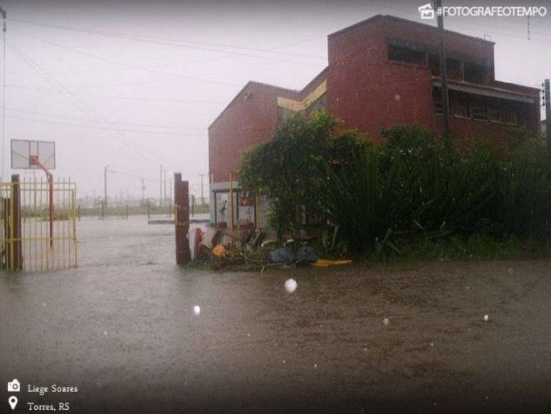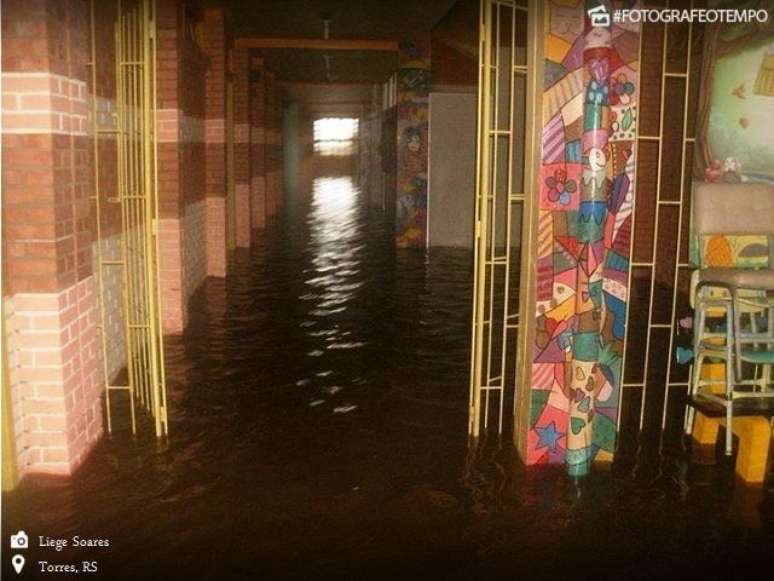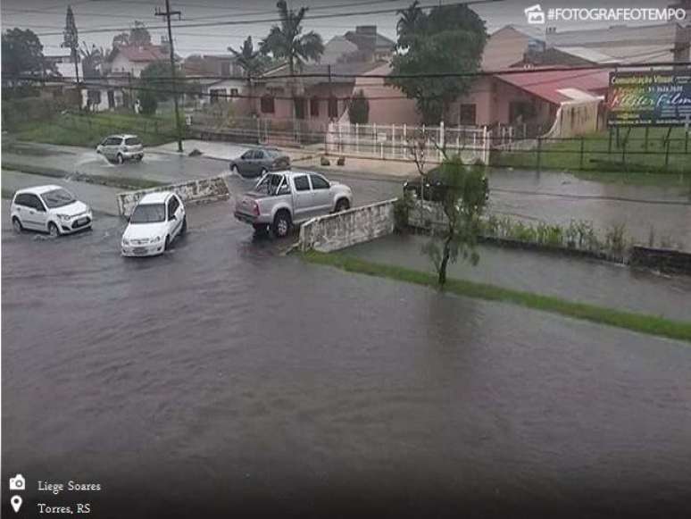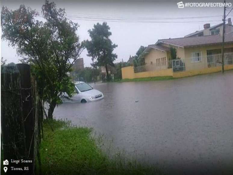 A cidade de Torres, no litoral norte gaúcho, foi completamente alagada nesta segunda-feira pela chuva persistente e volumosa que começou na tarde do domingo, 10 de abril.