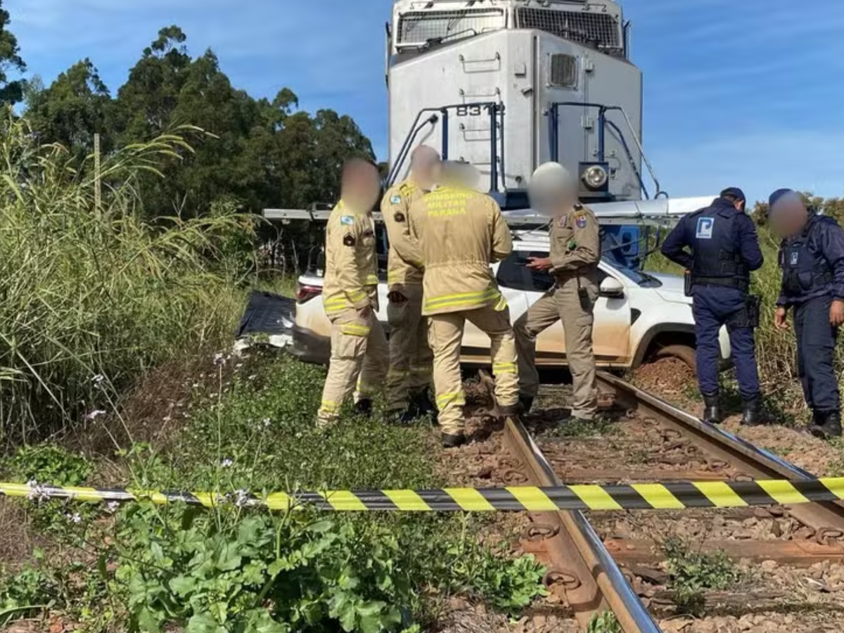 Carro é atingido e arrastado por trem no norte do Paraná; pai morre no local e filha de 19 anos é levada ao hospital com ferimentos