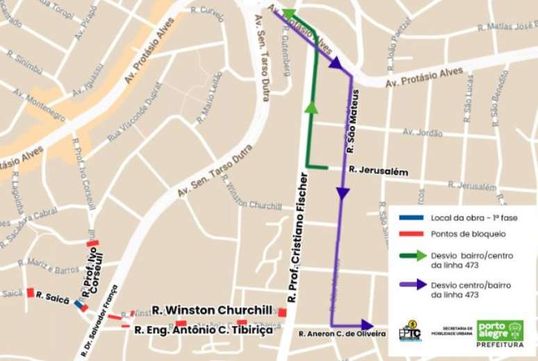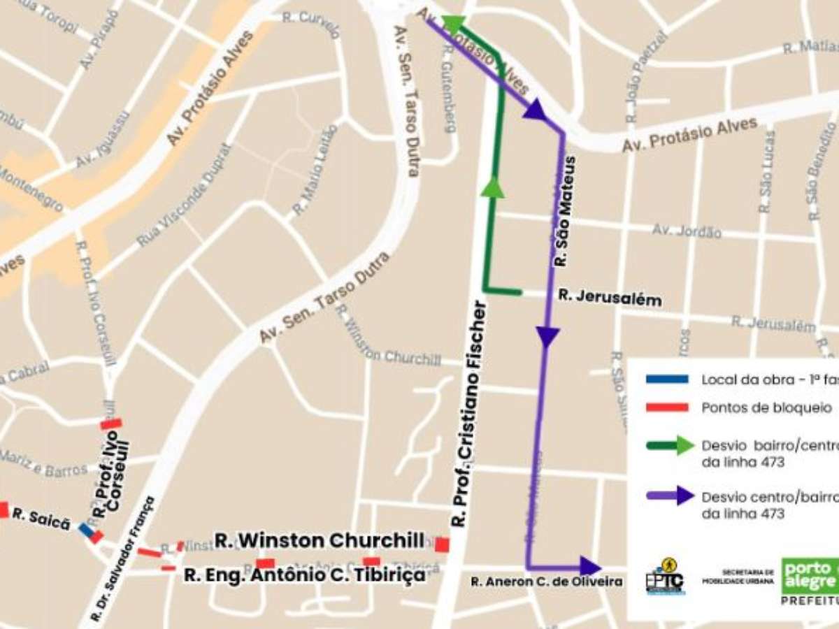 Em razão dos bloqueios, a linha 473 terá alteração de itinerário. No sentido bairro-Centro, o desvio será pela Jerusalém, Cristiano Fischer e Protásio Alves. Já no sentido Centro-bairro será pela Protasio Alves, São Mateus e Aneron Corrêa de Oliveira.