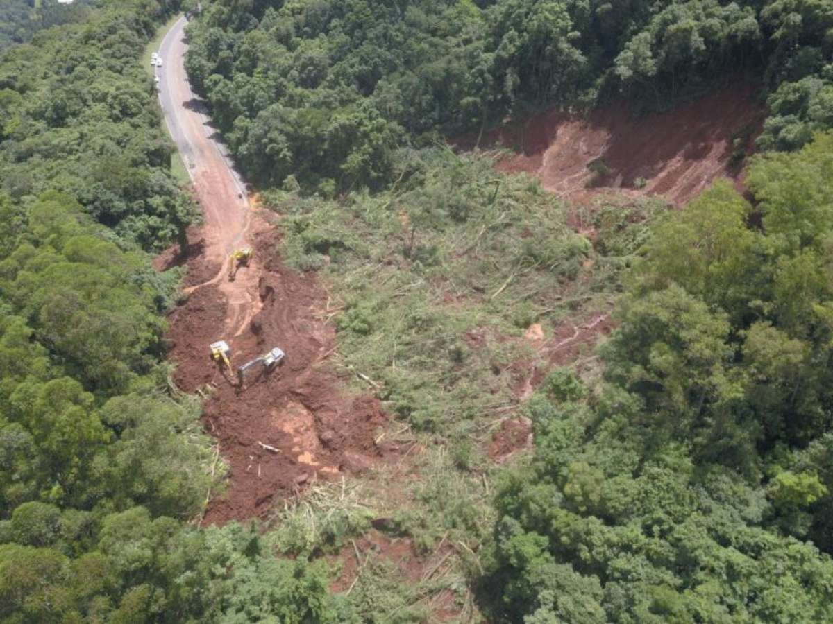 Acúmulo de terra e pedras após deslizamento pode atrasar reabertura da rodovia por semanas