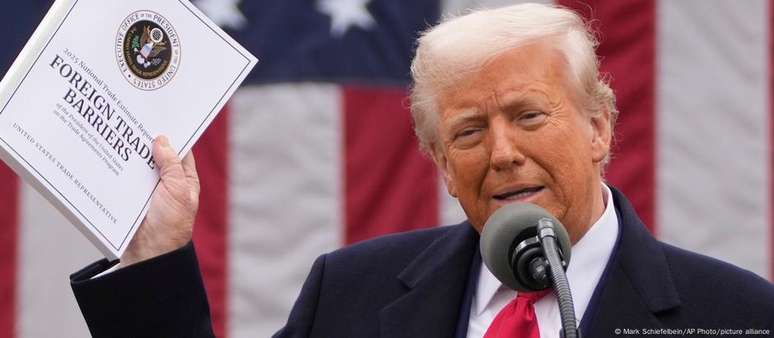 O republicano impôs uma tarifa global básica de 10% a aliados e rivais, com taxas adicionais em alguns casos, como a China ou a União Europeia (UE).