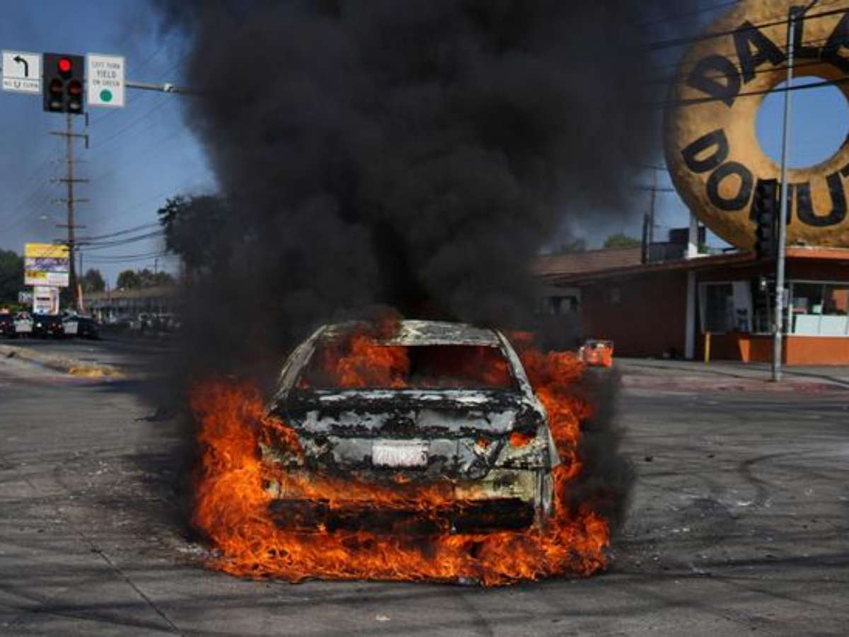 As tensões na cidade eclodiram na sexta-feira, quando manifestantes entraram em confronto com forças policiais que conduziam batidas para que resultaram na detenção de 44 supostos imigrantes irregulares na área central de Los Angeles.