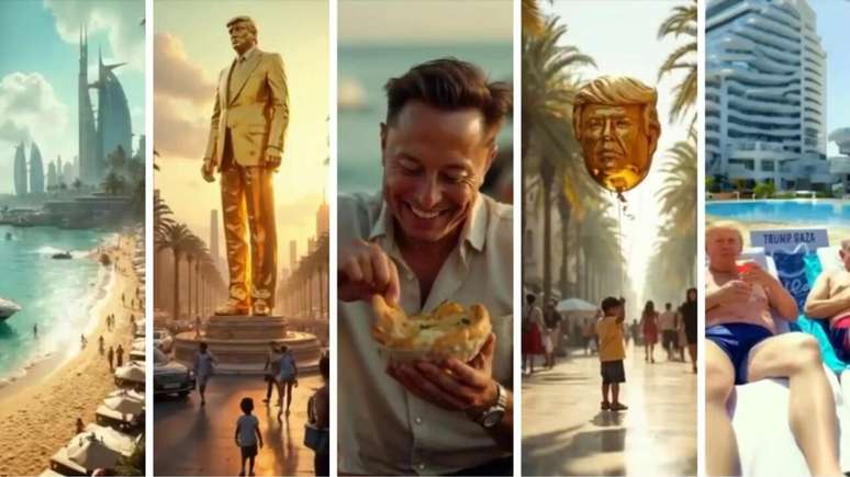 A representação, feita com o auxílio de inteligência artificial, propõe uma realidade alternativa para a Faixa de Gaza, sugerindo um futuro de prosperidade e desenvolvimento.