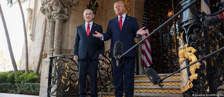 Trump recebeu Netanyahu em seu resort de Mar-a-Lago, em Palm Beach, e elogiou a atuação do governo israelense durante a implementação do acordo de cessar-fogo na Faixa de Gaza, que entrou em vigor em outubro.