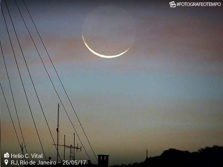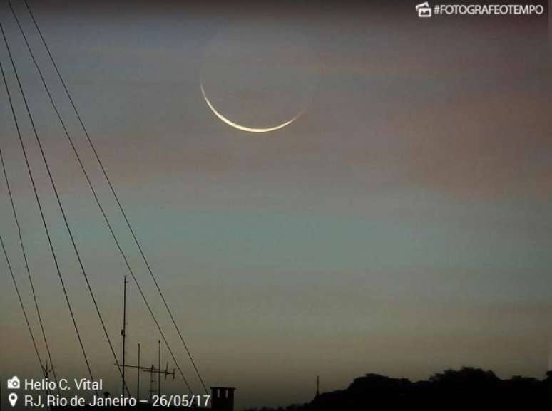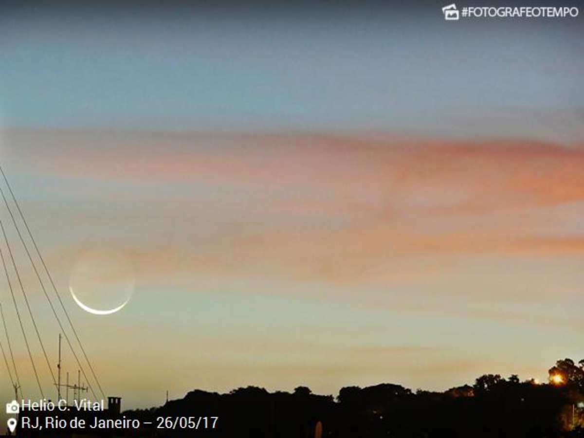 As fotos a seguir foram feitas no anoitecer de 26/05/2017, às 18:00 . Este é o fino crescente lunar do primeiro dia após a superlua nova. O disco lunar estava apenas 1,7% iluminado e com 33,4 ' de arco, um diâmetro raramente atingido.