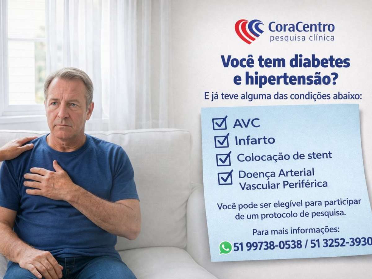 O CoraCentro-Pesquisa Clínica, está selecionando voluntários para uma importante pesquisa em prevenção cardiovascular