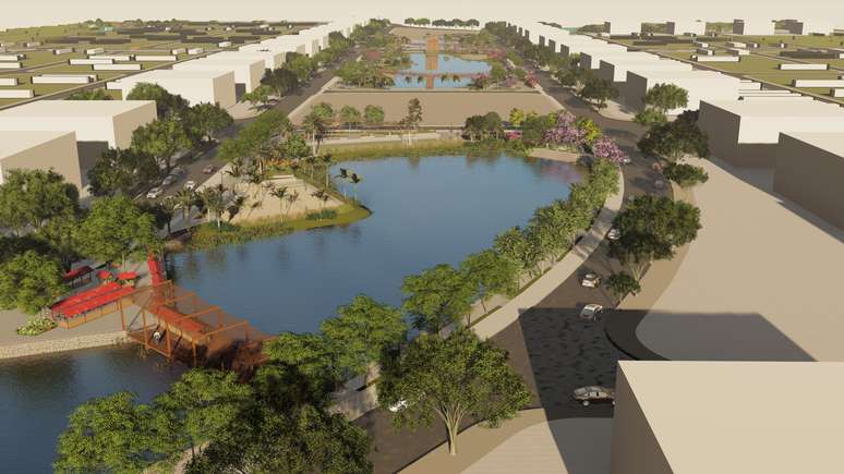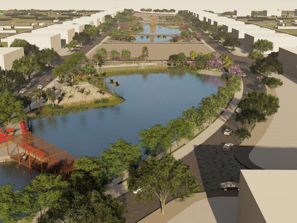 O projeto participou do eixo "Conviver com as Águas", que reúne propostas urbanas adaptadas aos eventos extremos e à gestão de recursos hídricos. O empreendimento propõe um modelo de urbanismo resiliente, com mais de 1,8 milhão de metros quadrados, e que integra Soluções Baseadas na Natureza (SBNs) em diferentes etapas do planejamento urbano. São, ao todo, mais de 35 mil m² de lagos de amortecimento, 15 mil m² de canteiros pluviais e 12 mil m² de biovaletas, que contribuem para reduzir o pico de vazão durante chuvas intensas e aumentar a infiltração no solo. Além disso, 110 mil m² do bairro são destinados a áreas verdes, paisagismo e drenagem sustentável.