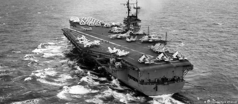 O peso militar do navio revela a musculatura que Washington se preparava para acionar. À época, a embarcação de 325 metros comprimento, equivalente a três campos de futebol, já era considerado uma revolução tecnológica e peça-chave da Marinha americana. Em seus 38 anos de operação, ele foi empregado em combates na Líbia e no Vietnã, e se tornou palco de um dos maiores desastres de fogo amigo da história militar americana.
