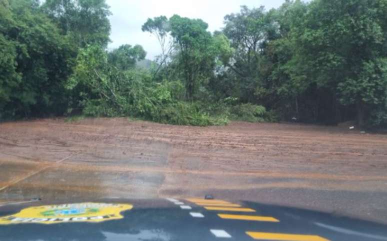 No km 38, em São Vendelino, erosão com galho sobre a via.