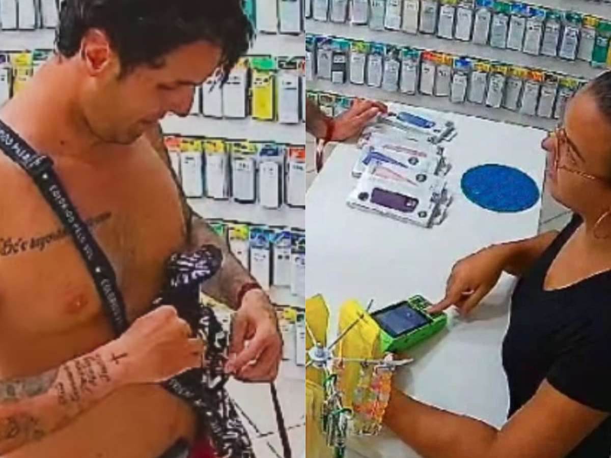 Câmeras de segurança registraram o momento em que o suspeito entra na loja como um cliente comum, rindo e interagindo com a vítima antes de seguir para os fundos do estabelecimento onde ocorreu o crime. O vídeo também mostra sua saída tranquila após o ataque, enquanto outra mulher clama por ajuda do lado de fora.