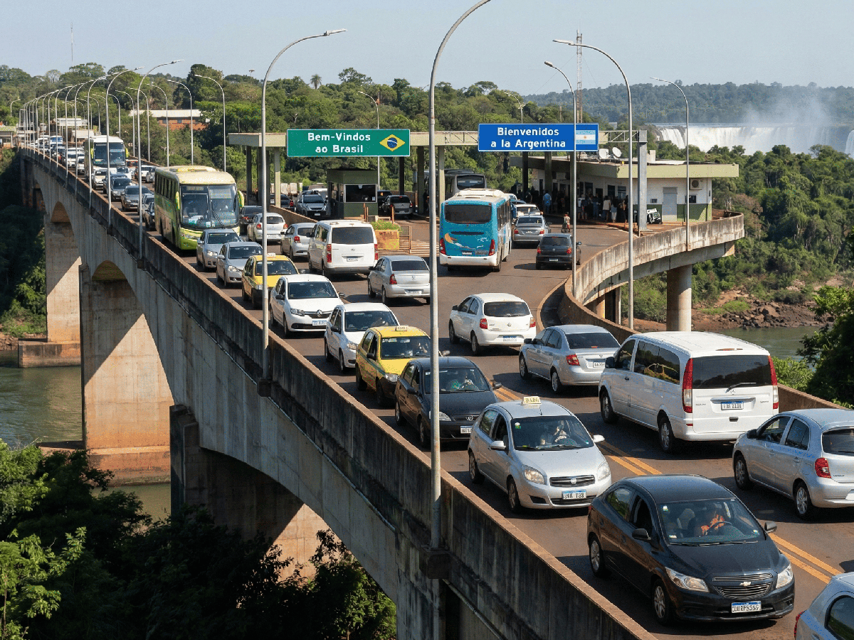 O crescimento das viagens rodoviárias entre Brasil e Argentina, impulsionado pelo turismo de fronteira e pela busca por alternativas econômicas ao transporte aéreo, tem transformado Foz do Iguaçu em um dos principais pontos de saída de motoristas brasileiros rumo ao Mercosul. Dados da Receita Federal indicam que cerca de 11 mil veículos cruzam diariamente a Ponte Tancredo Neves, que liga Foz do Iguaçu a Puerto Iguazú, somando aproximadamente 4,1 milhões de veículos por ano na fronteira com a Argentina. Em 2025, o governo argentino também registrou recorde na aduana de Puerto Iguazú, com 7,59 milhões de pessoas passando pela ponte ao longo do ano, mostrando a força desse corredor para o turismo e o comércio entre os dois países.