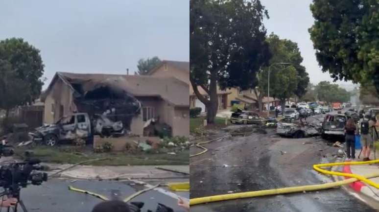 Jato cai na manhã desta quinta-feira (22) em um bairro em San Diego, na Califórnia; queda da aeronave causa duas mortes