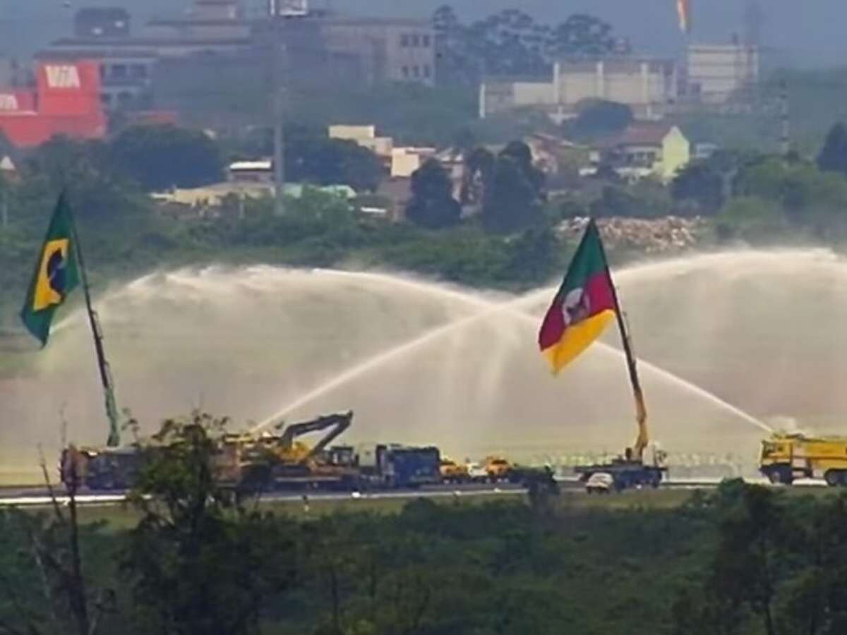 Às vésperas da reabertura do Aeroporto Internacional Salgado Filho, em Porto Alegre, marcada para o dia 21 de outubro, uma cerimônia simbólica chamou atenção. Imagens capturadas por uma câmera ao vivo revelaram um arco de batismo, formado por jatos de água lançados por caminhões dos bombeiros, e uma enorme bandeira do Rio Grande do Sul sendo erguida por um guindaste.