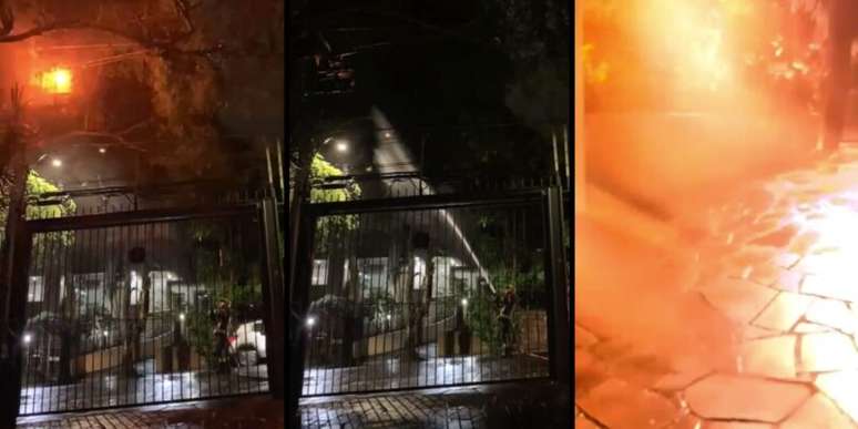 Vídeos virais mostram a equipe de bombeiros utilizando água em vez de pó químico para apagar as chamas em um poste, resultando em uma explosão no transformador e causando um significativo apagão na área.