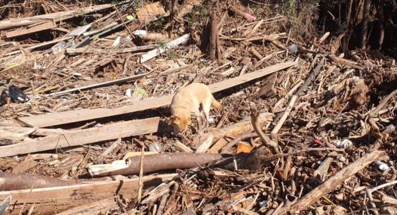 VÍDEO: Cão do Corpo de Bombeiros Militar de SC encontra vítima da enchente no Rio Grande do Sul