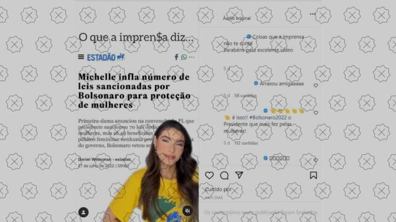 O vídeo com a alegação falsa foi publicado por Karol Franco, no Instagram, no dia 28 de julho. Ela reagia a uma checagem publicada no dia anterior pelo jornal O Estado de S. Paulo, que tinha como base a fala da primeira-dama, Michelle Bolsonaro, na convenção do PL, em que ela afirmou que o presidente havia sancionado 70 leis de proteção para as mulheres. Segundo o jornal, a alegação é baseada em um levantamento da Secretaria da Mulher da Câmara dos Deputados, comandada pela deputada Celina Leão (PP-DF), aliada do presidente.