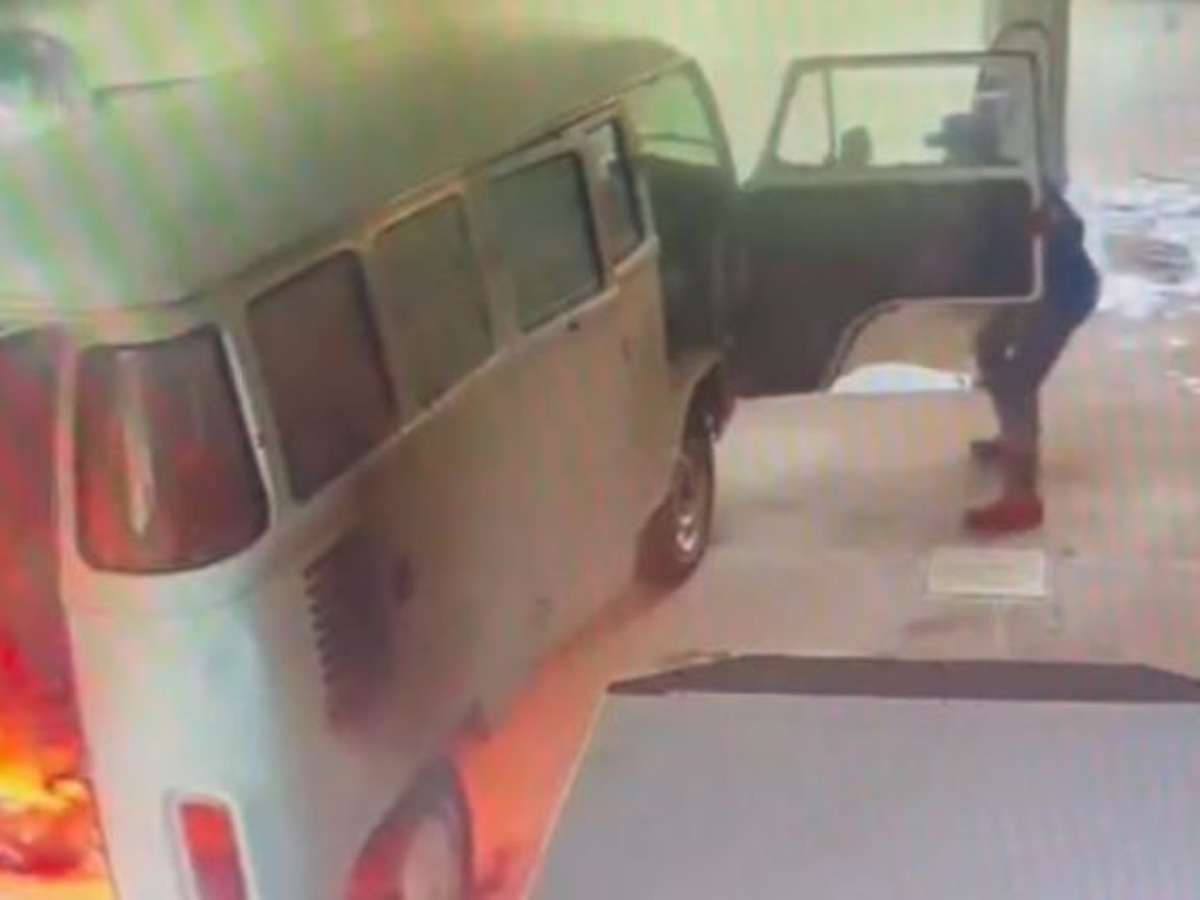 Imagens impressionantes mostram uma VW Kombi pegando fogo em um posto de gasolina de Caseiros, município localizado no Norte do Rio Grande do Sul.