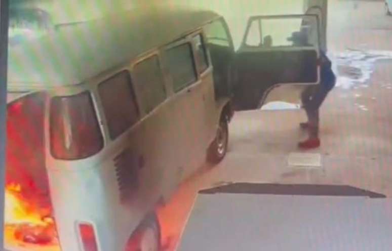Vídeo mostra Kombi pegando fogo em posto de combustíveis no RS