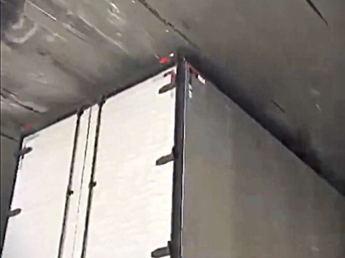 Vídeo: Motorista desatento "entala" caminhão dentro de túnel em Porto Alegre