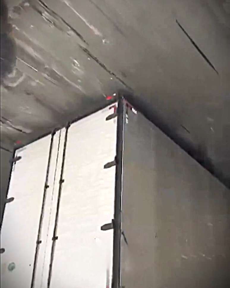 De acordo com informações apuradas no local, o túnel comporta apenas veículos com até 4,30 metros de altura. O caminhão ultrapassava essa medida, o que resultou no bloqueio parcial da via.