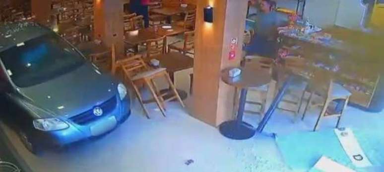 O impacto arrastou o guichê do restaurante até os fundos do local.