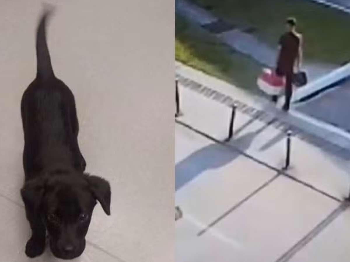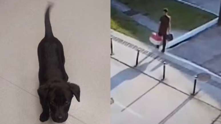 Em imagens da câmeras de segurança do aeroporto, o rapaz aparece carregando o cão dentro de uma caixa de transporte. Em seguida, ele coloca a caixa entre dois carros no estacionamento e se afasta caminhando.