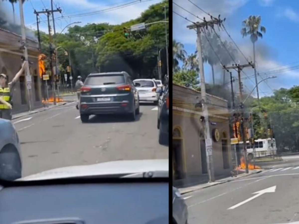 Vídeo: Poste de luz incendeia inesperadamente na avenida Osvaldo Aranha em Porto Alegre