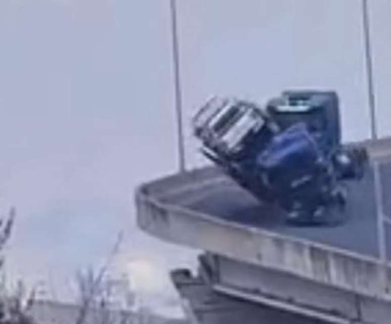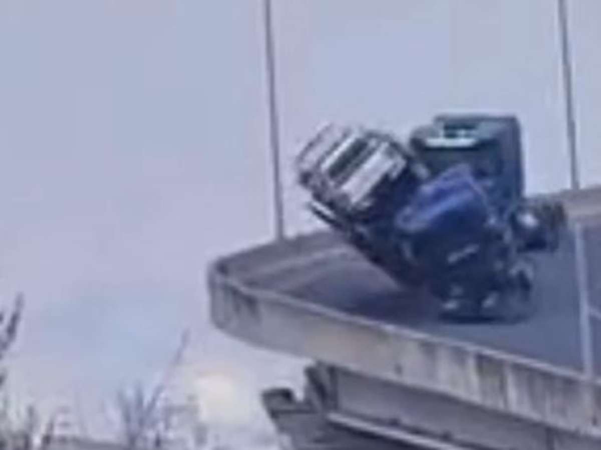 VÍDEO: Veja o momento em que caminhão-cegonha tomba e carro cai da ponte de Porto Alegre