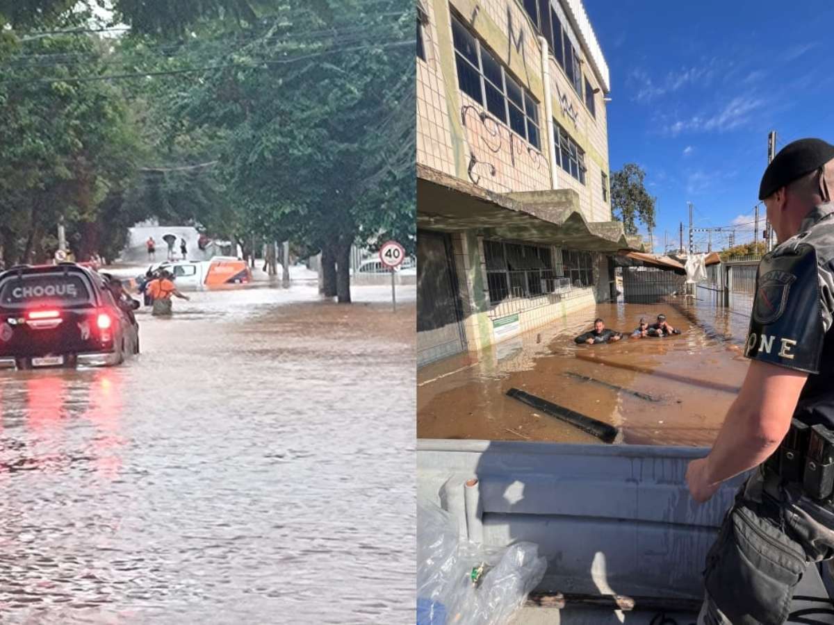 Nos vídeos, é possível ver o patrulhamento em áreas alagadas e o resgate de moradores ilhados.