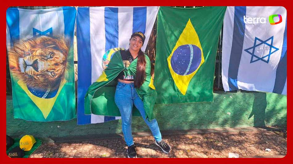 Ambulante ex-apoiadora de Lula diz que ato de Bolsonaro é renda certa: ‘Patriotas nos direcionam’. A vendedora Cinthia Batista conversou com a reportagem do Terra neste domingo, 29, antes do início do ato convocado por Jair Bolsonaro na Avenida Paulista. A ambulante comentou que os produtos comercializados são direcionados pelos temas convocados pelos”patriotas” e que a “renda é a garantida”. A vendedora também comentou que já foi apoiadora de Lula na infância, mas que atualmente é “totalmente de direita” após criar “maturidade”. Imagens: Maria Luiza Valeriano/Redação Terra