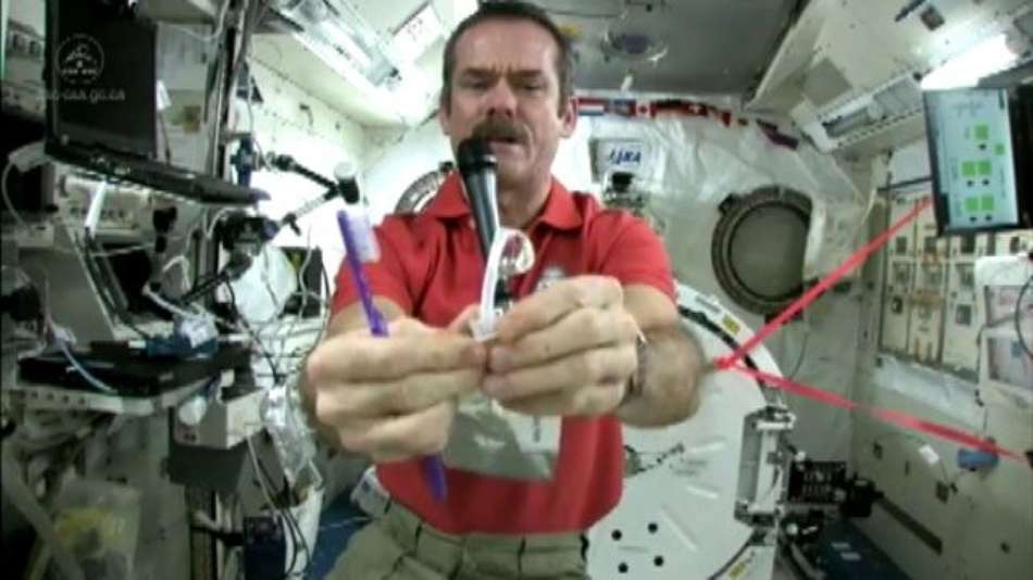 Notícias Astronauta mostra como escovar os dentes no espaço Exibir comentários Compartilhar Chris Hadfield diz que precisa engolir pasta, pois não tem como descartá-la após a escovação Reprodução Publicidade