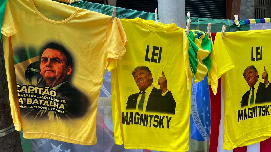 A concentração do evento em Copacabana, no Rio de Janeiro, exibe o símbolo norte-americano em meio ao verde e amarelo do Brasil. Bandeirões com “fora Lula” e “Lei Magnitsky” também estão sendo vendidas por ambulantes para apoiadores no local. Em Brasília, a bandeira dos Estados Unidos também foi hasteada junto ao símbolo nacional.