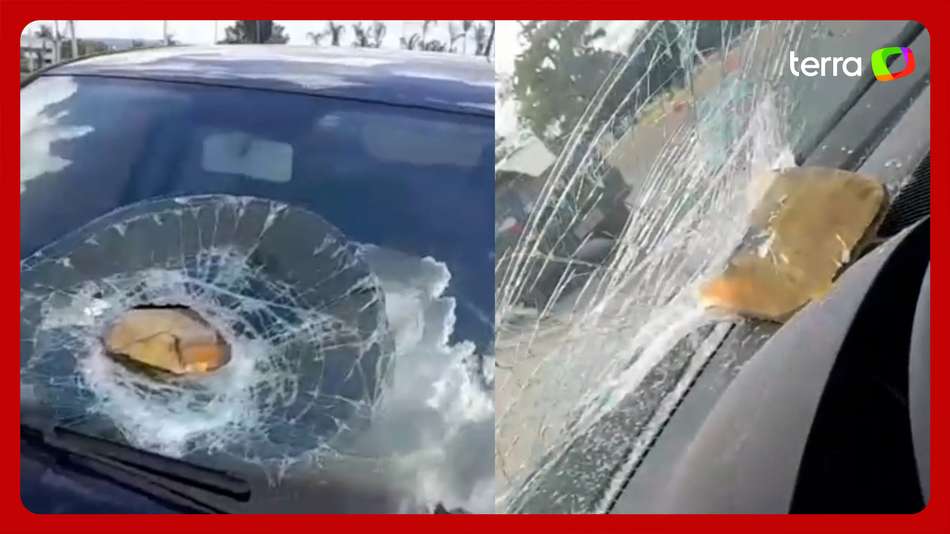 Bloco de sinalização se desprende e é arremessado em vidro de carro