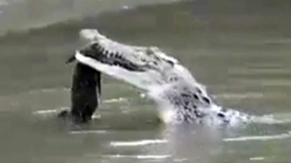Notícias Crocodilo canibal assusta turistas dentro de rio Exibir comentários Compartilhar Grupo se surpreendeu ao ver animal devorando réptil da mesma espécie na Austrália Reprodução Publicidade