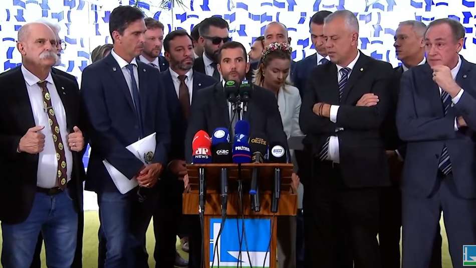 A declaração foi dada nesta terça-feira, 10, durante coletiva de imprensa da oposição na Câmara dos Deputados. "O impeachment é pouco, mas tenho certeza que será o caminho para que ele saia do STF e logo depois possa ser preso", afirmou Carlos Jordy. Reprodução/Câmara dos Deputados/Youtube