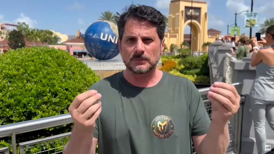 Em vídeo na Disney, Marcos do Val nega que fugiu e manda recado a Moraes: ‘Violador da Constituição’. O senador pelo Podemos-ES publicou a gravação na sexta-feira, 25, onde aparece no parque de diversões na cidade de Orlando, nos Estados Unidos. O parlamentar negou ter fugido do Brasil e disse que viajou aos EUA para “curtir o recesso” com a filha que, segundo ele, estava afastada há dois anos e meio. A declaração do senador ocorre após o ministro Alexandre de Moraes, do STF, ter ordenado a retenção dos passaportes dele em agosto de 2024. Na ocasião, ele foi considerado suspeito de integrar um grupo que promovia ataques nas redes sociais contra agentes da PF que atuavam em investigações junto ao STF. Na gravação, o senador afirma que, embora tenha outras cidadanias, a Polícia Federal, na imigração, “fez questão” que ele utilizasse o passaporte diplomático para entrar nos EUA. Reprodução/Marcos do Val/Youtube