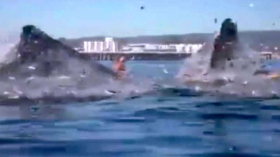 Notícias Enorme baleia Jubarte dá susto em surfista na Califórnia Exibir comentários Compartilhar Nas imagens, a baleia abre a boca e a surfista desaparece por alguns instantes; por sorte, ninguém ficou ferido Reprodução Publicidade