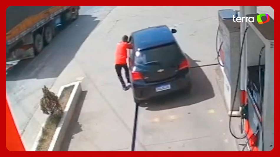 Frentista se pendura em carro após motorista tentar fugir sem pagar pela gasolina