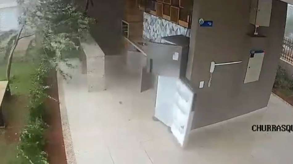 Geladeira ‘voa’ durante forte vendaval no interior de São Paulo