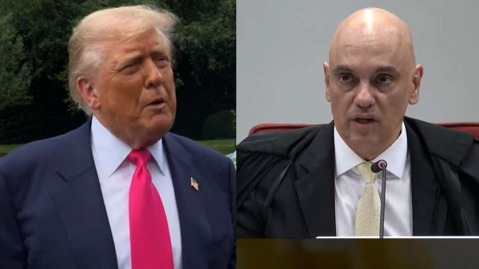 Governo Trump aplica Lei Magnitsky contra Alexandre de Moraes. A punição ao ministro do Supremo Tribunal Federal foi publicada no site do Tesouro do Estados Unidos nesta quarta-feira, 30. Com a decisão, o governo dos EUA bloqueia contas bancárias e trava seu acesso ao sistema financeiro; Moraes é a 1ª autoridade de um país democrático alvo das sanções. A lei ainda prevê a proibição de entrada nos EUA; o seu visto e de outros oito membros do STF e do procurador-geral da República já tinham sido suspensos por ordem de Trump. O dispositivo legal acionado pelo Departamento de Estado norte-americano pune estrangeiros acusados de corrupção ou violações graves de direitos humanos. A decisão, agora em vigor, ocorre no contexto da pressão de bolsonaristas por punições contra integrantes do STF para paralisar o julgamento de Jair Bolsonaro. Reprodução/TV Justiça Reprodução/The White House/Youtube